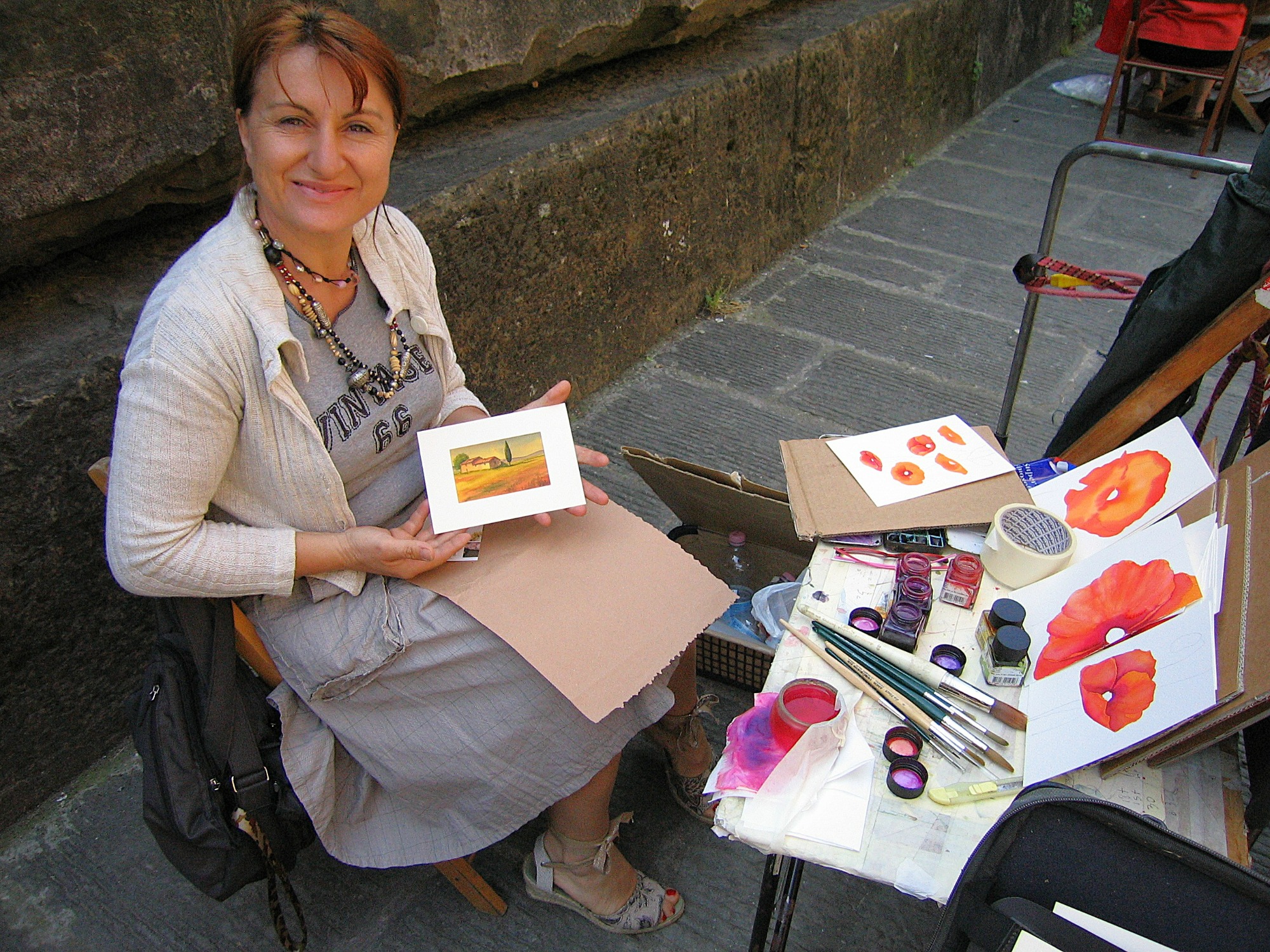 We took the train into Florence for two wonderful days while we stayed in the villa near Dicomano. I think I enjoyed Florence more than any other place because of the art museums, the architecture, the artistic beauty of the cathedral and the layout of the city. It was great to see copy of the statue of David by Michelangelo outside the Uffizi Art Gallery along with many other amazing sculptures. There is such a feeling there of the Renaissance with all of its fresh ideas and activity. Later I went to the Academia where I saw the original David. Many critics say it was the greatest sculpture ever.