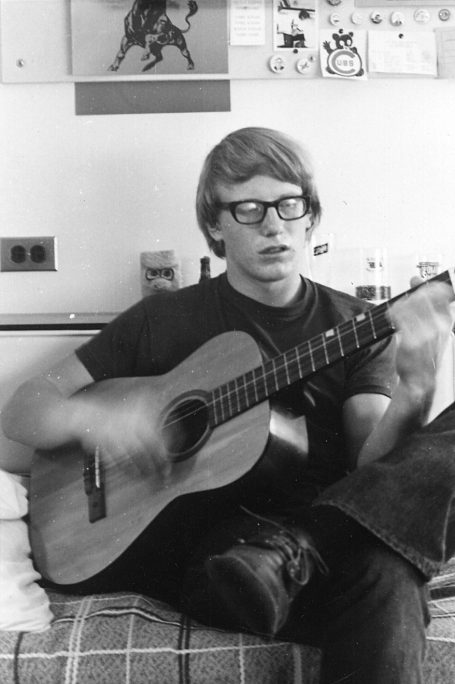 A huge blow to my dreams that year was Jim’s decision during the summer to go solo rather than sing together with me. I was devastated, but set my heart to go it alone or, better said, alongside Jim. We both began to play at coffeehouses and anywhere we could set something up. We earned a little bit of money along the way, so I guess I can say I was a professional singer for a time (!). I also began writing my own songs during those days, some that others began to appreciate. I often took long walks in the woods around Dekalb and walked for hours along the railroad tracks outside town singing at the top of my lungs to train my voice. Jim had an electric guitar, and so I picked one up along with a cheap amp for $50. We sometimes played for hours into the night, oblivious to the other guys in the dorm that we must have driven nuts. They were great days, though woven with times of great depression for lack of a girl friend.
