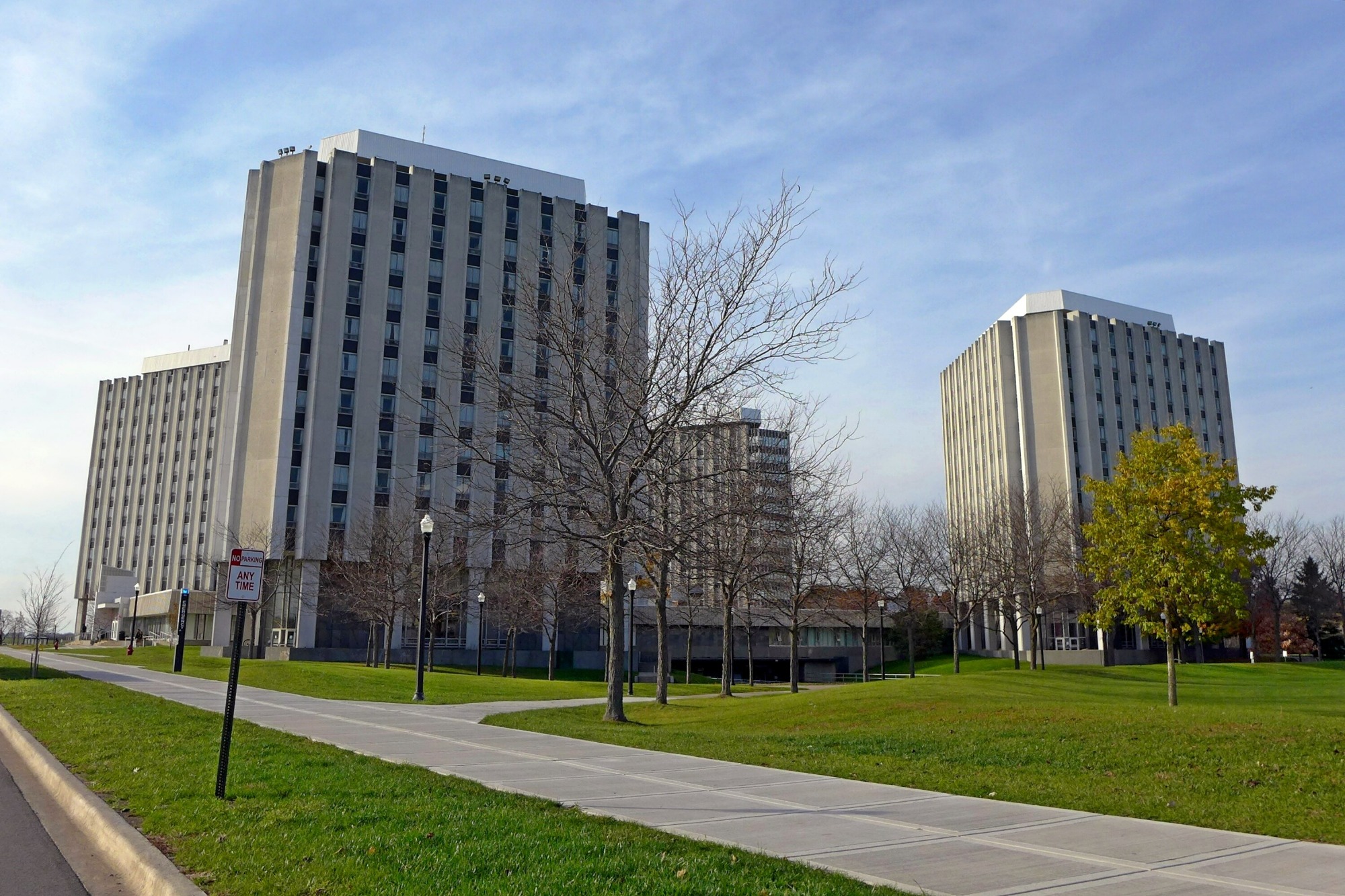 My third year at Northern I applied for the position of resident assistant at the dorms and got the job. The job was part policeman, part helper, and part friend of the guys on the floor. Each floor had a resident assistant. I was on the 11th floor. It was a good job, one that made me feel important. I was well accepted and well liked by all the guys. To the left is a photo of the dorms we lived in.